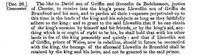The terms of his submission (above) were brokered by Prince Dafydd ap Gruffudd and Guncelin Badlesmere, justice of Chester. It stipulated that should Llywelyn be reconciled with his namesake, Prince Llywelyn ap Gruffudd, his homage would not revert to the Prince of Wales. Instead it would be retained by the king and his heirs, so that Llywelyn’s lands would no longer be part of the principality of Wales.